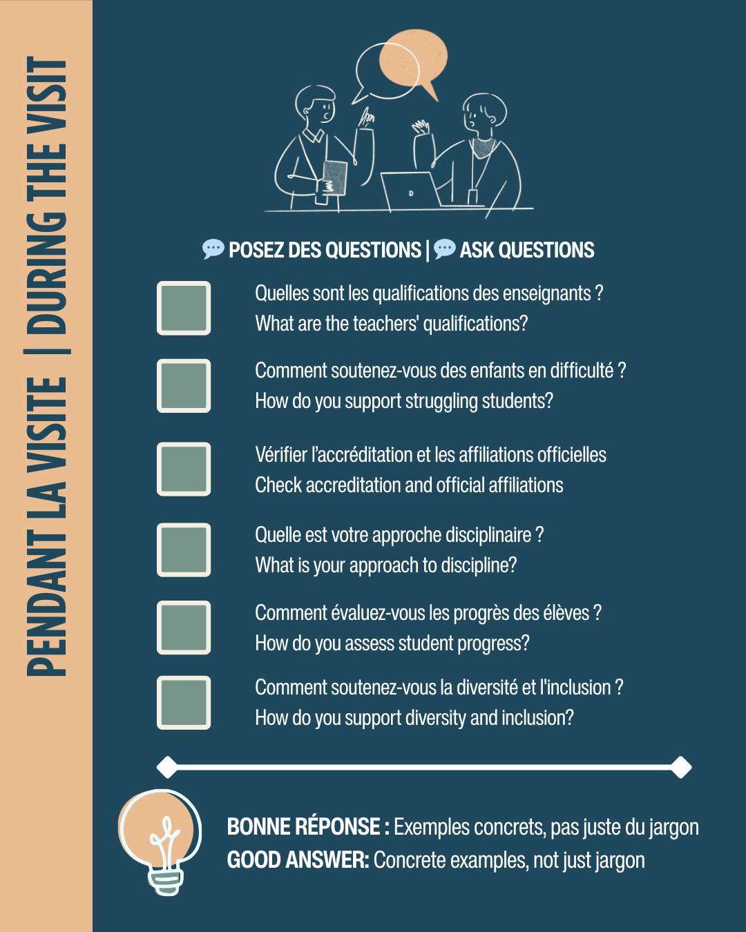 Utilisez-la pour TOUTE école que vous visitez—y compris la nôtre. Parce qu'un parent informé prend de meilleures décisions.