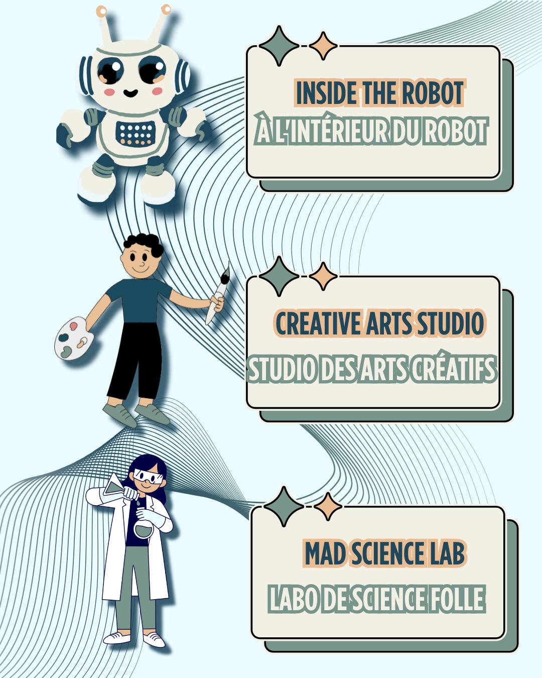 De la construction de robots à la création de films, des sciences médico-légales à l'exploration de l'IA—il y a quelque chose pour chaque esprit curieux de 6 à 16 ans !