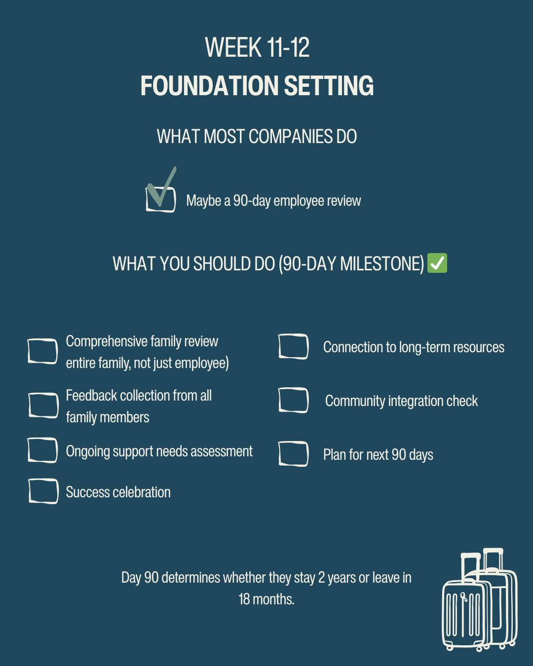 ✓ Week 11-12: Foundation setting (90-day review, long-term planning)