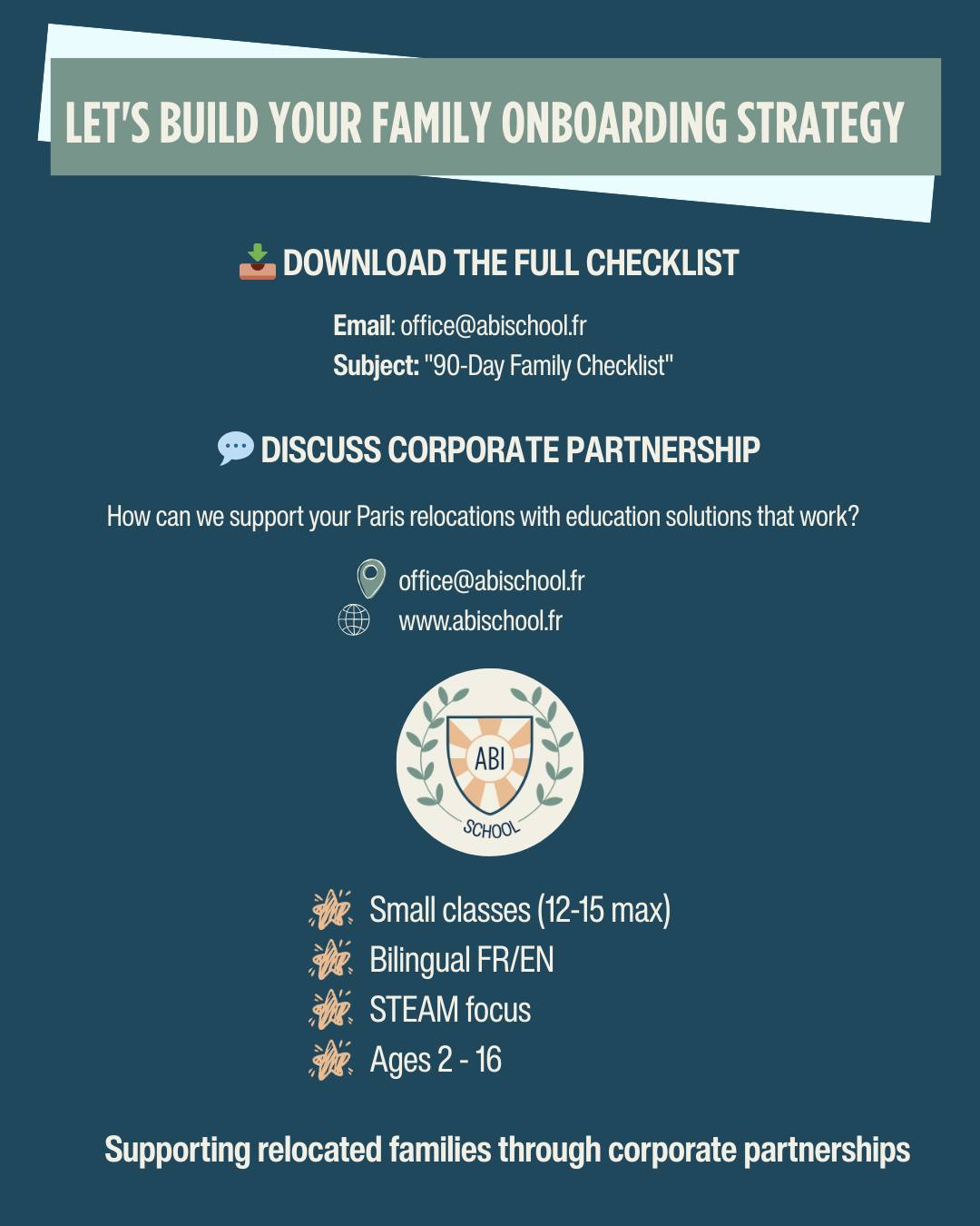 Email office@abischool.fr with subject "90-Day Family Checklist"