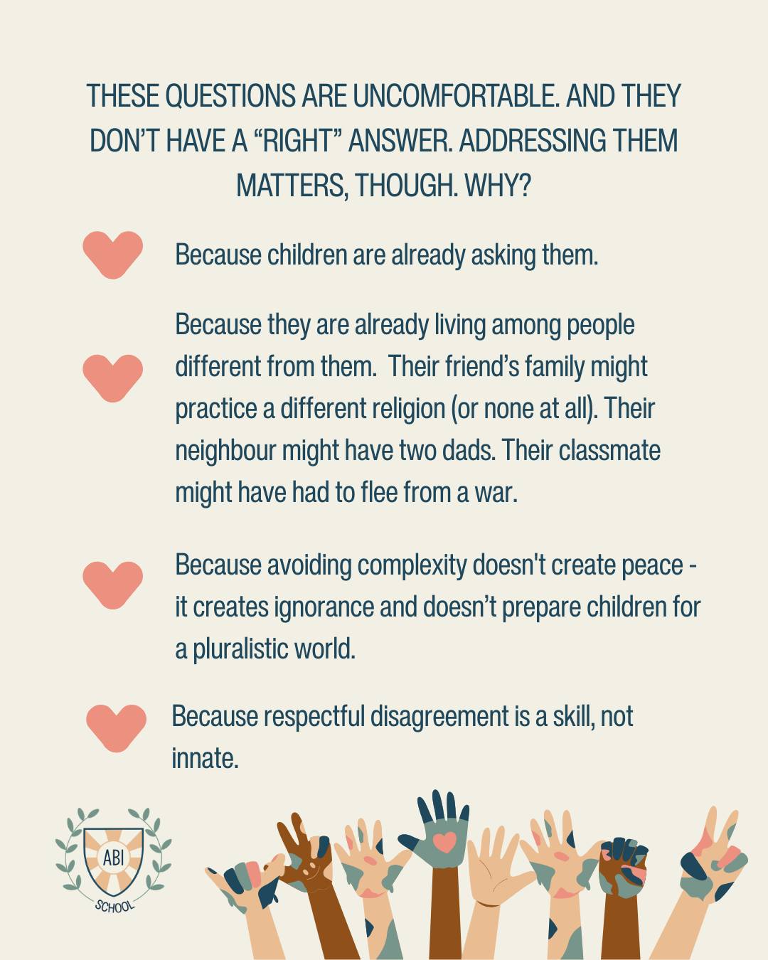And when we avoid them, we teach them something: that some questions are too dangerous to explore. That disagreement should be avoided. That complexity should be feared.
