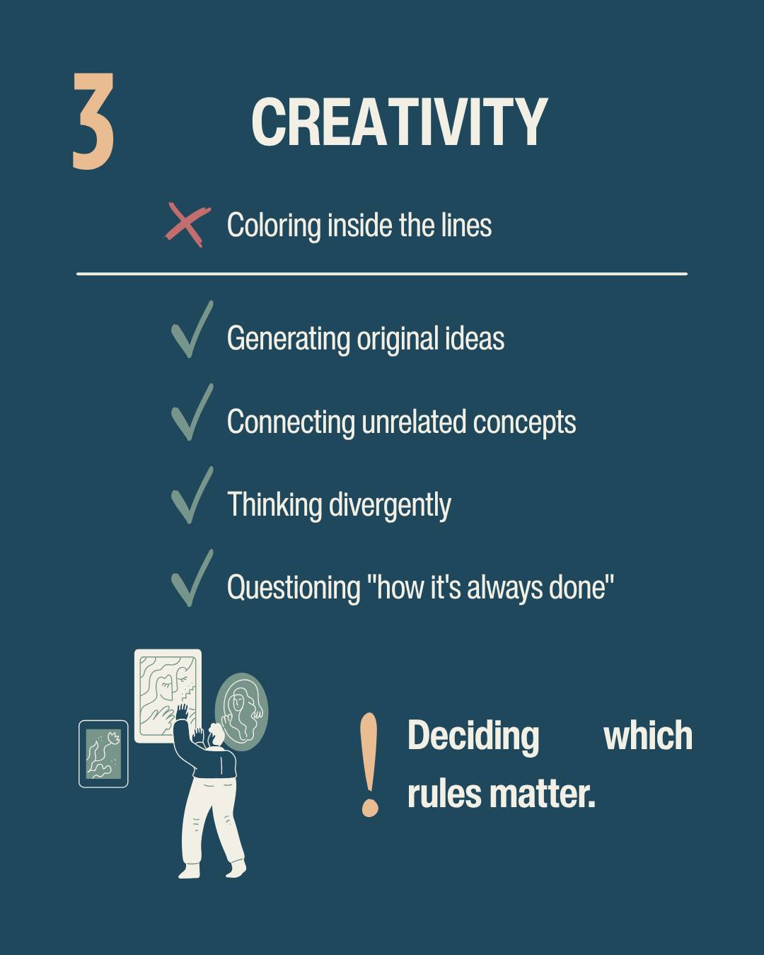 ✓ Critical thinking (not WHAT to think, HOW to think)