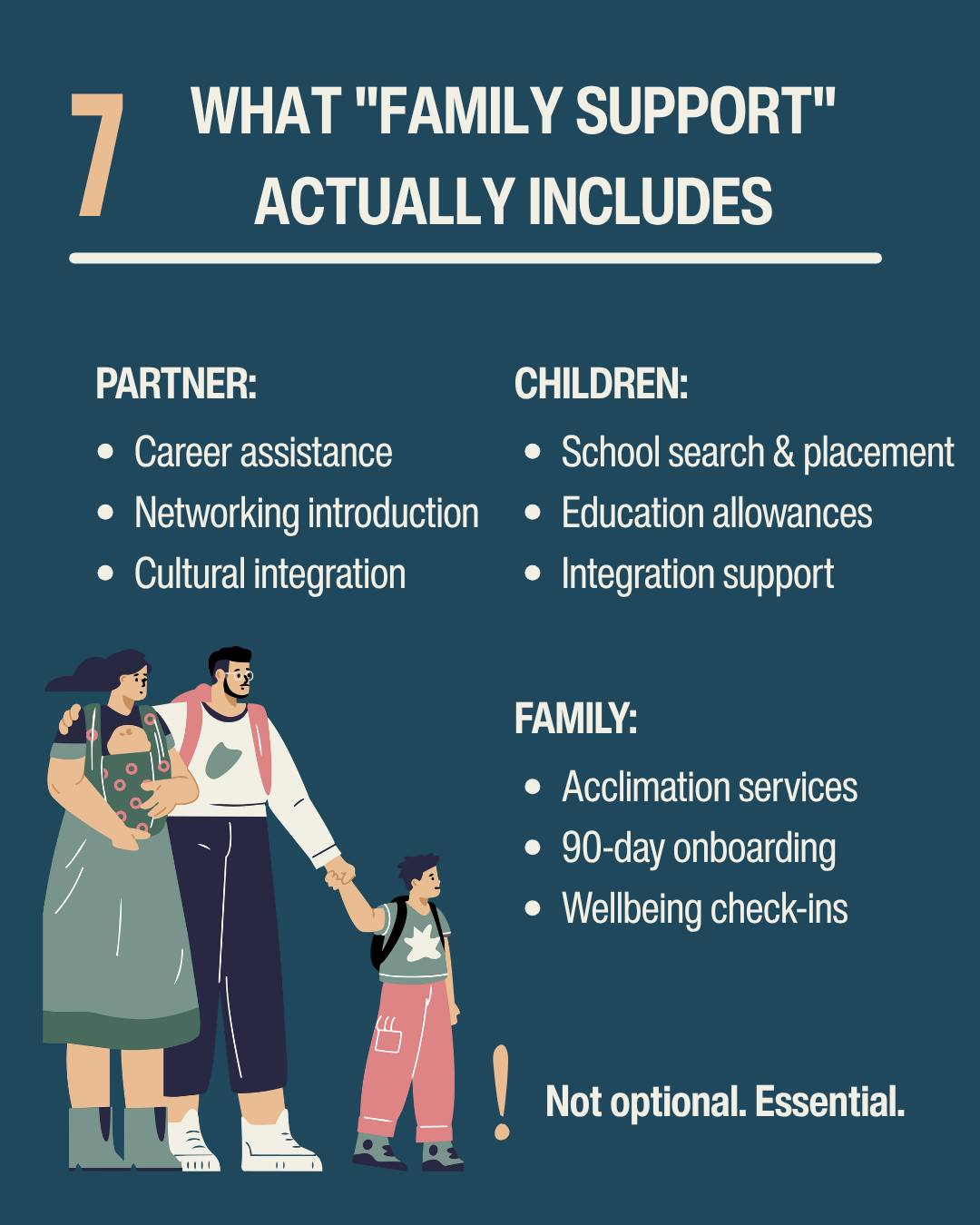 And companies are responding—family assistance up from 61% (2022) to 74% (2024), the NEI Global Relocation’s International All Benefits Survey of 108 global companies’ policies suggests. ECA International’s 2025 Benefits Survey found that childcare support doubled from 11% to 23%.