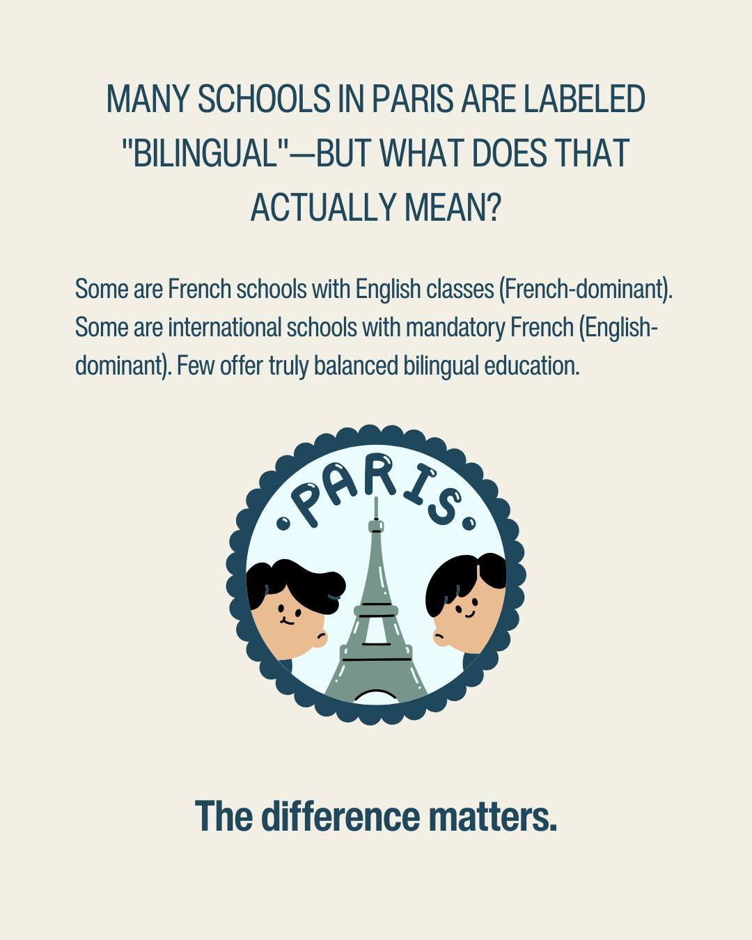 But research shows not all bilingual programs are created equal—and the differences have real consequences for children's development. Many schools in Paris are labeled "bilingual"—but what does that actually mean?